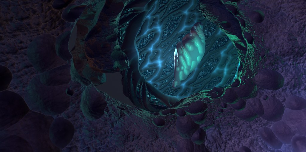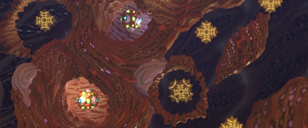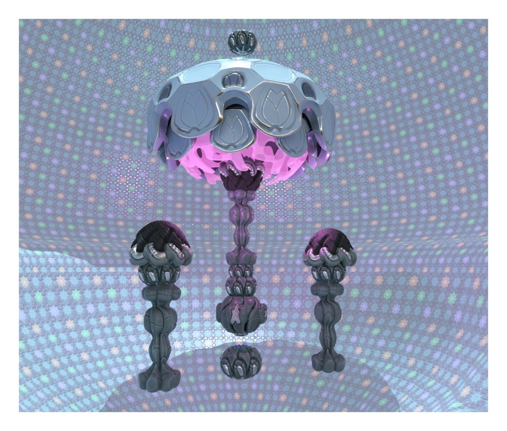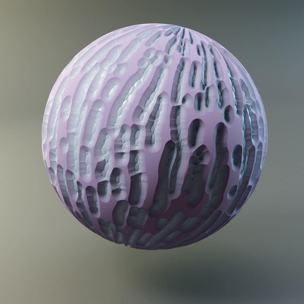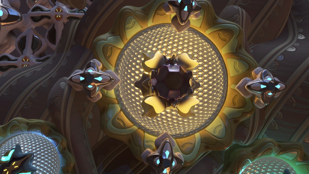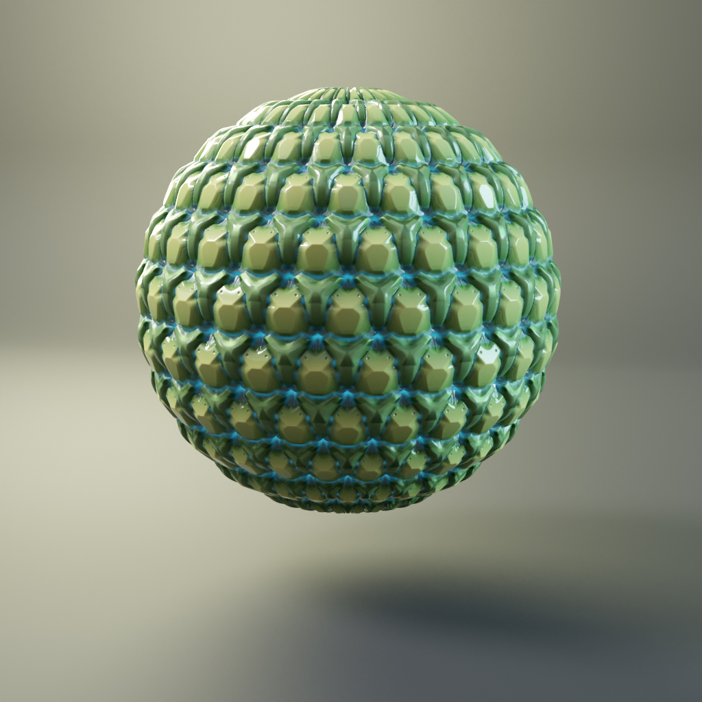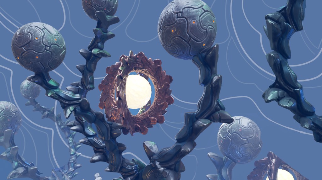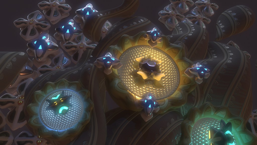 Below is the initial zbrush sculpt. When I start these illustrations, I just start sculpting forms and shapes, sometimes I have a theme in mind, but mostly I just jump in sculpting. I try to come up with a shape language to tie the forms together and play with compositions. I can sculpt much faster than I can sketch so it allows me to experiment and play at a quick rate, letting creativity come through without the hindrance of tools. I’ve been working with zbrush for many years in the game industry, so I’m quite comfortable iterating quickly. Once I’m done with the sculpt, I have to prep the model to be utilized in “Substance painter” where Ill start creating materials.