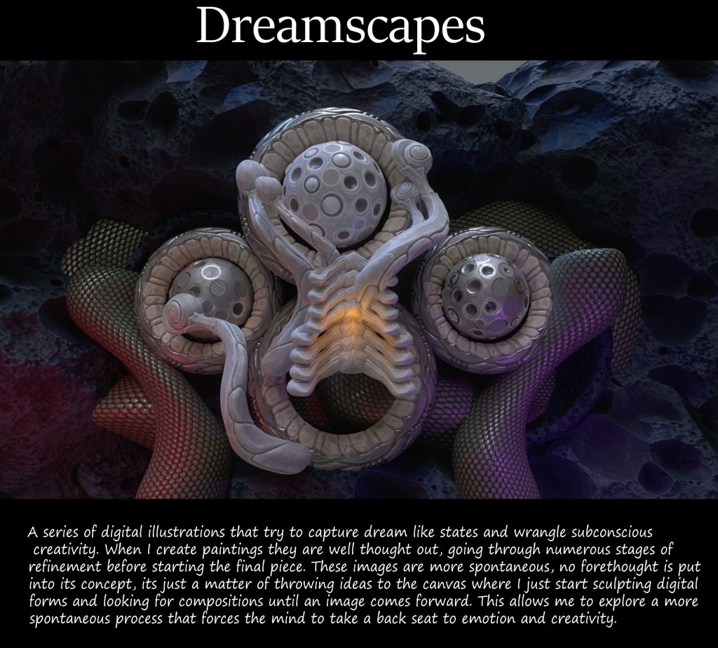 First off Id like to state that these images are created through a hand-crafted process utilizing digital tools and does not use any sort of ai technology. Imagine the creative process of painting but utilizing digital tools instead of brushes. I personally find that utilizing ai technology stunts the creative process and I prefer art that is sourced from individuals who have crafted their skills through years of life experience and personal inspiration. I utilize Zbrush, Substance Painter, Substance Designer, Marmoset, Photoshop and After Effects.